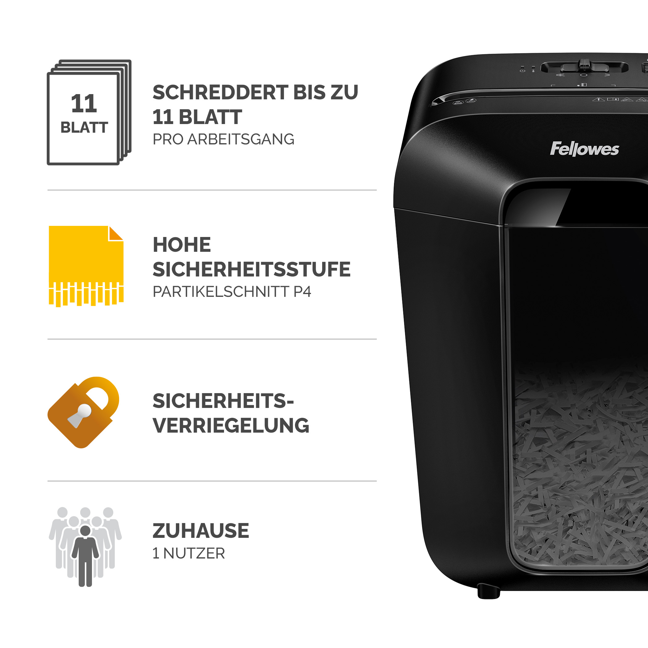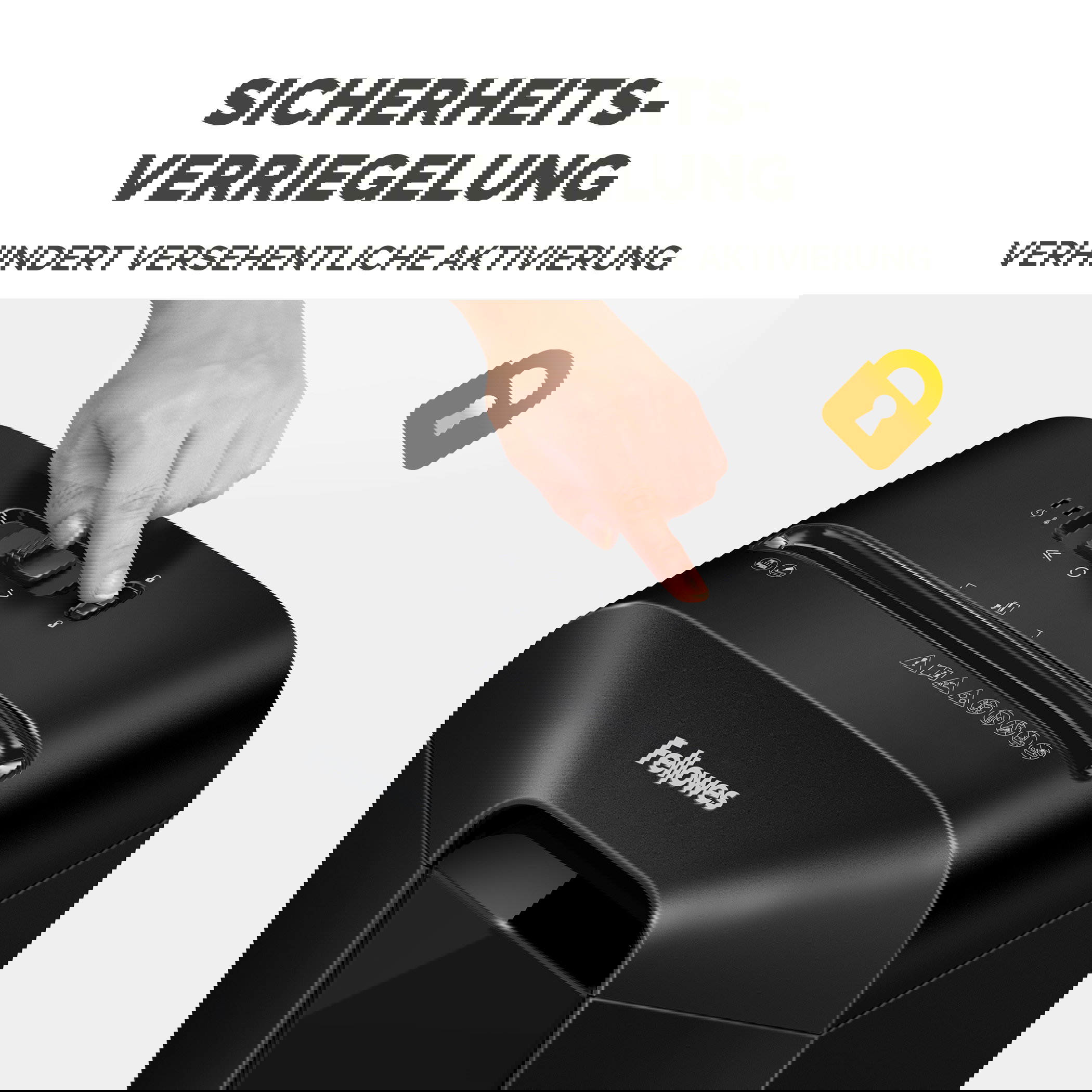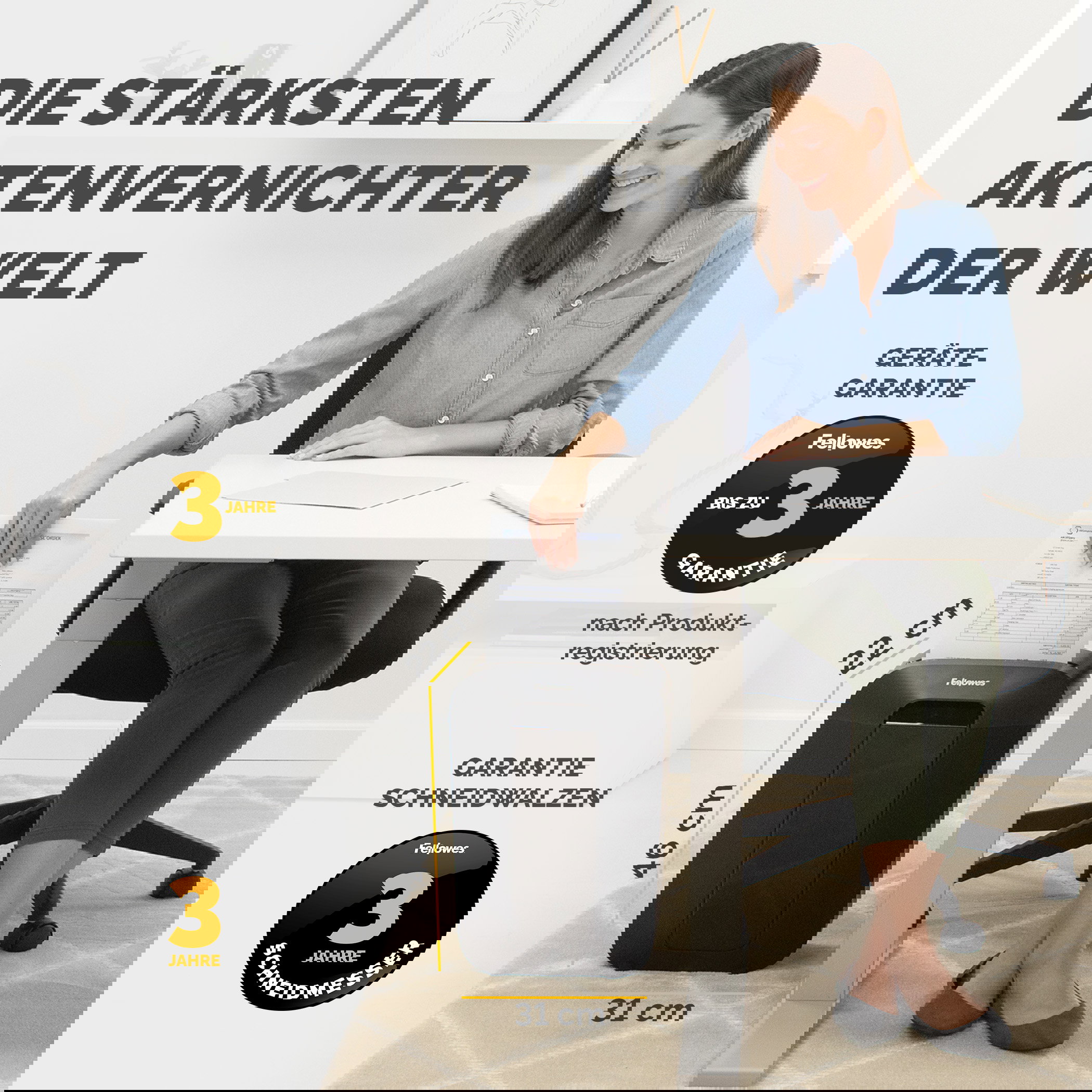 Produktbeschreibung Aktenver. Fellowes 4407501 P4 schwarz Lx70 4x40 mm 18l