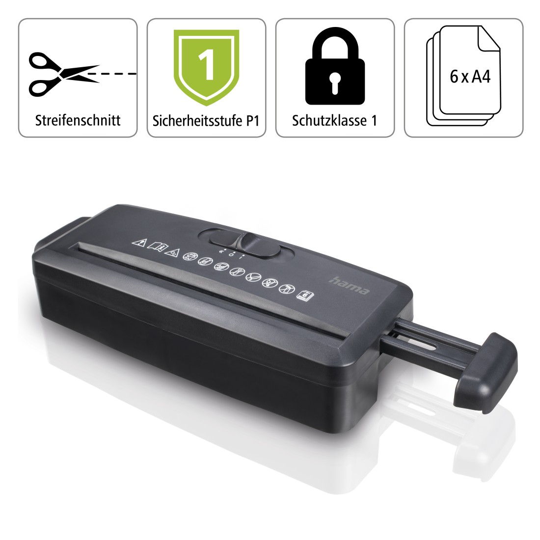 Produktbeschreibung Aktenvernichter Hama Mini S6 8 mm P1 schwarz