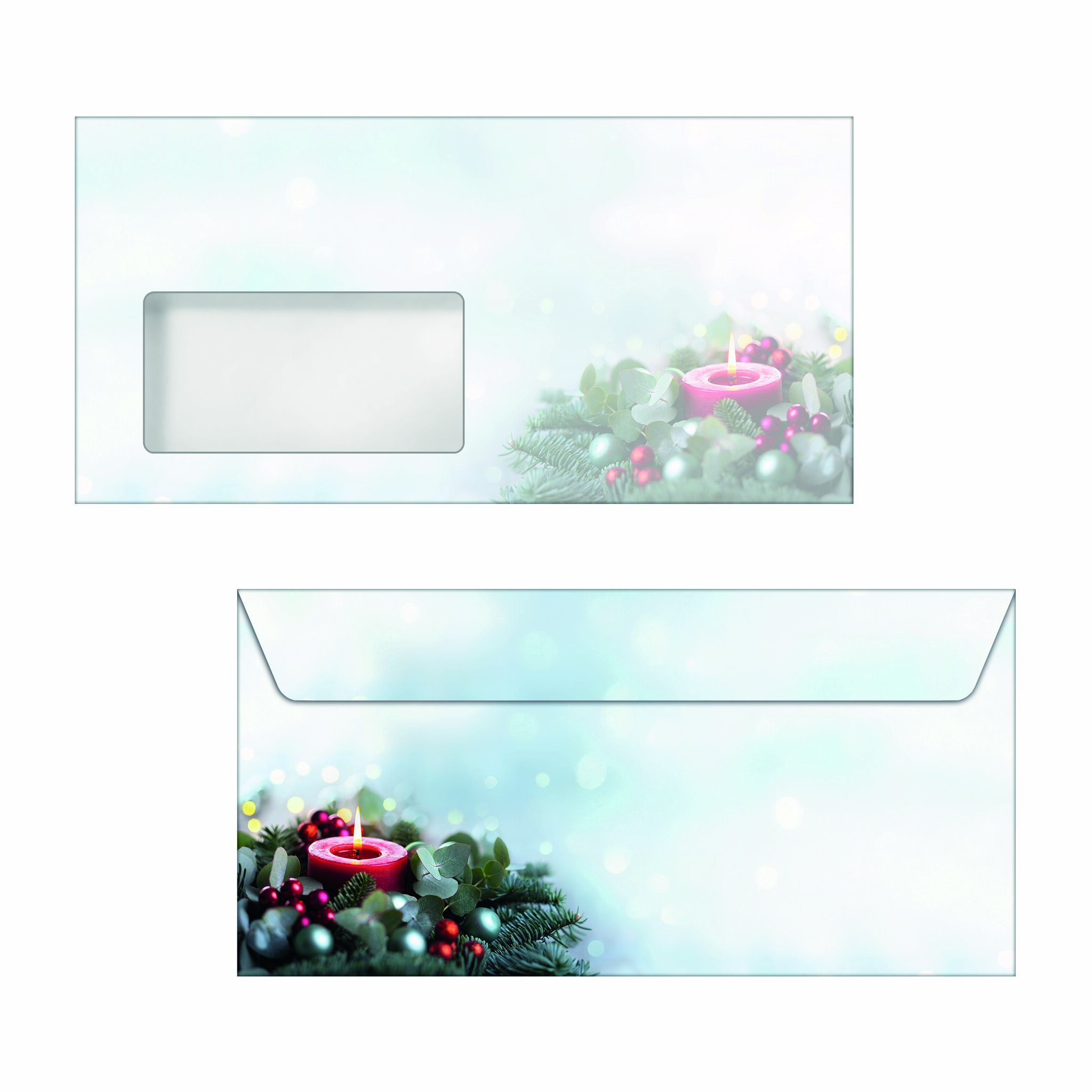 Für besondere Weihnachtsgrüße, die bereits im Briefkasten auffallen. Stilvolle Weihnachtsumschläge "Candlelight Cheer" (Motiv: Kerze in grün/rot) im Format DIN lang, 50 Stück mit gummierter Klappe. Ihre Produktvorteile:Made in EUStimmungsvolles Design, ansprechend und modernFSC-zertifiziert: hochwertiges, umweltfreundliches Papier aus verantwortungsvollen QuellenPraktisches Fenster: kein eigenes Adressetikett bzw. keine zusätzliche Beschriftung nötigMit Innendruck zur Verhinderung der DurchsichtÜberraschen Sie Geschäftspartner, Mitarbeiter, Kollegen oder auch Freunde und Familie mit exklusiven Grüßen zur Weihnachtszeit. Individuell und unkompliziert bedruckbar - für Ihre persönliche und einzigartige Weihnachtspost im Handumdrehen. Keine Abhängigkeit von Druckereien, geringe Auflagen ganz nach Bedarf - und das in Premiumqualität. Lieferumfang: 1x Weihnachts-Umschlag DU640, 50 Stück