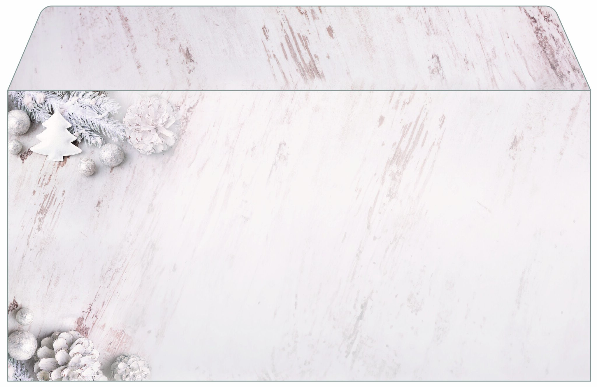 Für besondere Weihnachtsgrüße, die Sie individuell bedrucken und beschriften können. Stilvolle Weihnachtsumschläge "Rustic White" (Motiv: Tannenzapfen in beige/weiß) im Format DIN lang, 25 Stück mit gummierter Klappe. Ihre Produktvorteile:Made in EUStimmungsvolles Design, ansprechend und modernFSC-zertifiziert: hochwertiges, umweltfreundliches Papier aus verantwortungsvollen QuellenFür alle Inkjet-, Laser-Drucker und Kopierer geeignet, einfach zu gestalten mit der SIGEL Wordvorlage (Download auf Hersteller-Website) oder per Hand beschriftbarMit Innendruck zur Verhinderung der DurchsichtÜberraschen Sie Geschäftspartner, Mitarbeiter, Kollegen oder auch Freunde und Familie mit exklusiven Grüßen zur Weihnachtszeit. Individuell und unkompliziert bedruckbar - für Ihre persönliche und einzigartige Weihnachtspost im Handumdrehen. Keine Abhängigkeit von Druckereien, geringe Auflagen ganz nach Bedarf - und das in Premiumqualität. Lieferumfang: 1x Weihnachts-Umschlag DU673, 25 Stück