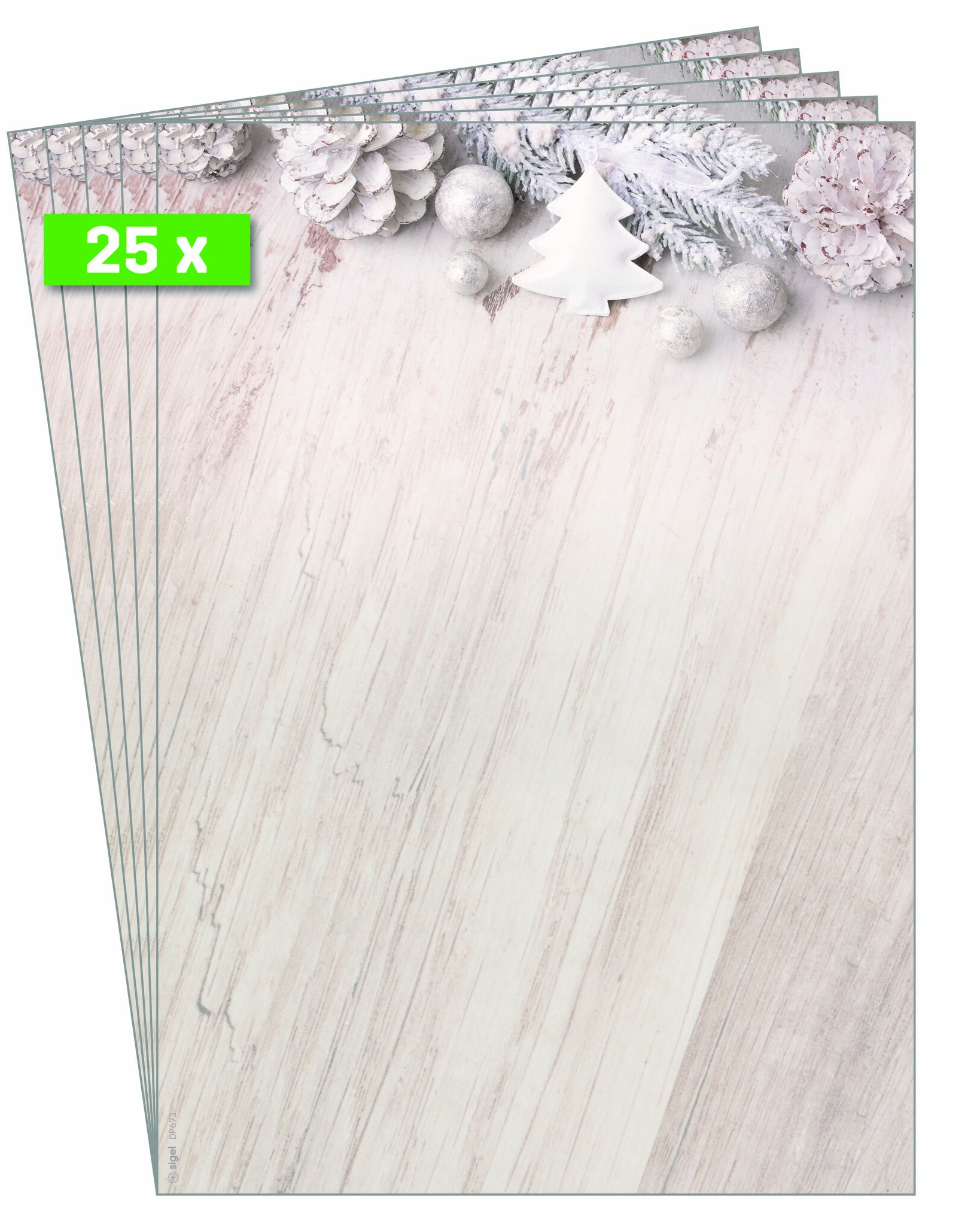 Für besondere Weihnachtsgrüße, die Sie individuell bedrucken und beschriften können. Mit einmaligem Design und ruck-zuck bedruckt: Weihnachts-Motiv-Papier "Rustic White" (Motiv: Tannenzapfen in beige/weiß) im Format A4 (Feinpapier, 90 g/m², 25 Blatt). Ihre Produktvorteile:Made in GermanyStimmungsvolles Design, ansprechend und modernFSC-zertifiziert: hochwertiges, umweltfreundliches Papier aus verantwortungsvollen QuellenFür alle Inkjet-, Laser-Drucker und Kopierer geeignet, einfach zu gestalten mit der SIGEL Wordvorlage (Download auf Hersteller-Website) oder per Hand beschriftbarWeihnachtsbriefpapier für Ihre Weihnachtspost, als weihnachtliches Angebotsschild, Einladung, Weihnachtsmenü, Menü- oder SpeisekarteÜberraschen Sie Geschäftspartner, Mitarbeiter, Kollegen oder auch Freunde und Familie mit exklusiven Grüßen zur Weihnachtszeit. Individuell und unkompliziert bedruckbar - für Ihre persönliche und einzigartige Weihnachtspost im Handumdrehen. Keine Abhängigkeit von Druckereien, geringe Auflagen ganz nach Bedarf - und das in Premiumqualität. Lieferumfang: 1x Weihnachts-Motiv-Papier DP673, 25 Blatt