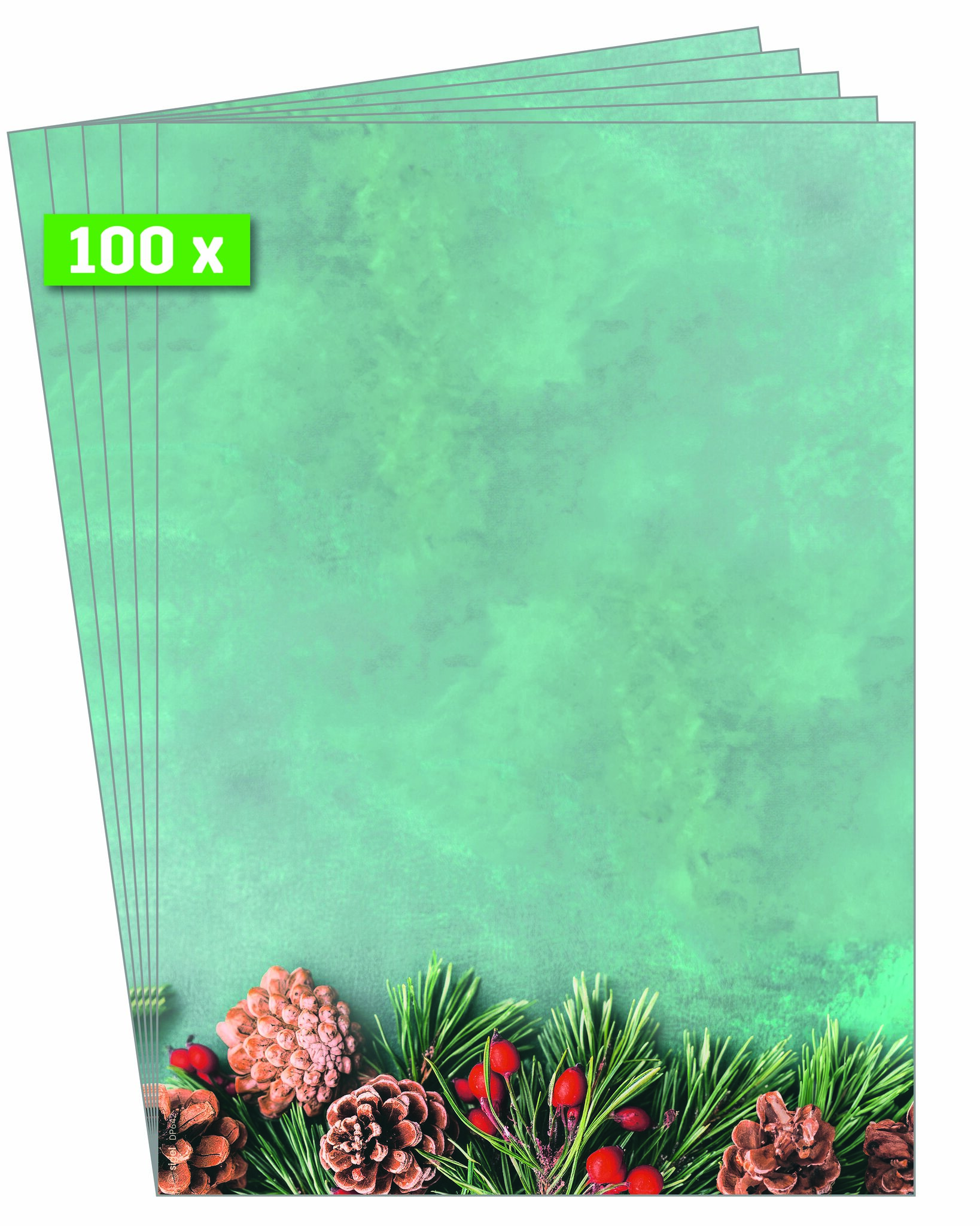 Für besondere Weihnachtsgrüße, die Sie individuell bedrucken und beschriften können. Mit einmaligem Design und ruck-zuck bedruckt: Weihnachts-Motiv-Papier "Green Christmas" (Motiv: Tannenzweige in grün/braun/rot) im Format A4 (Feinpapier, 90 g/m², 100 Blatt). Ihre Produktvorteile:Made in GermanyStimmungsvolles Design, ansprechend und modernFSC-zertifiziert: hochwertiges, umweltfreundliches Papier aus verantwortungsvollen QuellenFür alle Inkjet-, Laser-Drucker und Kopierer geeignet, einfach zu gestalten mit der SIGEL Wordvorlage (Download auf Hersteller-Website) oder per Hand beschriftbarWeihnachtsbriefpapier für Ihre Weihnachtspost, als weihnachtliches Angebotsschild, Einladung, Weihnachtsmenü, Menü- oder SpeisekarteÜberraschen Sie Geschäftspartner, Mitarbeiter, Kollegen oder auch Freunde und Familie mit exklusiven Grüßen zur Weihnachtszeit. Individuell und unkompliziert bedruckbar - für Ihre persönliche und einzigartige Weihnachtspost im Handumdrehen. Keine Abhängigkeit von Druckereien, geringe Auflagen ganz nach Bedarf - und das in Premiumqualität. Lieferumfang: 1x Weihnachts-Motiv-Papier DP642, 100 Blatt