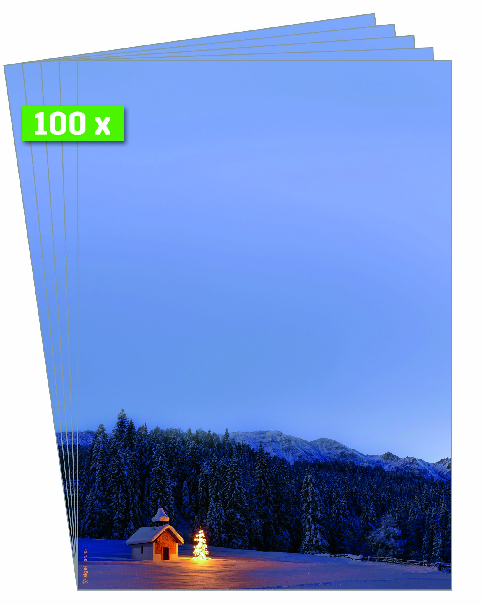 Für besondere Weihnachtsgrüße, die Sie individuell bedrucken und beschriften können. Mit einmaligem Design und ruck-zuck bedruckt: Weihnachts-Motiv-Papier "Christmas Chapel" (Motiv: Winterwald in blau) im Format A4 (Feinpapier, 90 g/m², 100 Blatt). Ihre Produktvorteile:Made in GermanyStimmungsvolles Design, ansprechend und modernFSC-zertifiziert: hochwertiges, umweltfreundliches Papier aus verantwortungsvollen QuellenFür alle Inkjet-, Laser-Drucker und Kopierer geeignet, einfach zu gestalten mit der SIGEL Wordvorlage (Download auf Hersteller-Website) oder per Hand beschriftbarWeihnachtsbriefpapier für Ihre Weihnachtspost, als weihnachtliches Angebotsschild, Einladung, Weihnachtsmenü, Menü- oder SpeisekarteÜberraschen Sie Geschäftspartner, Mitarbeiter, Kollegen oder auch Freunde und Familie mit exklusiven Grüßen zur Weihnachtszeit. Individuell und unkompliziert bedruckbar - für Ihre persönliche und einzigartige Weihnachtspost im Handumdrehen. Keine Abhängigkeit von Druckereien, geringe Auflagen ganz nach Bedarf - und das in Premiumqualität. Lieferumfang: 1x Weihnachts-Motiv-Papier DP645, 100 Blatt