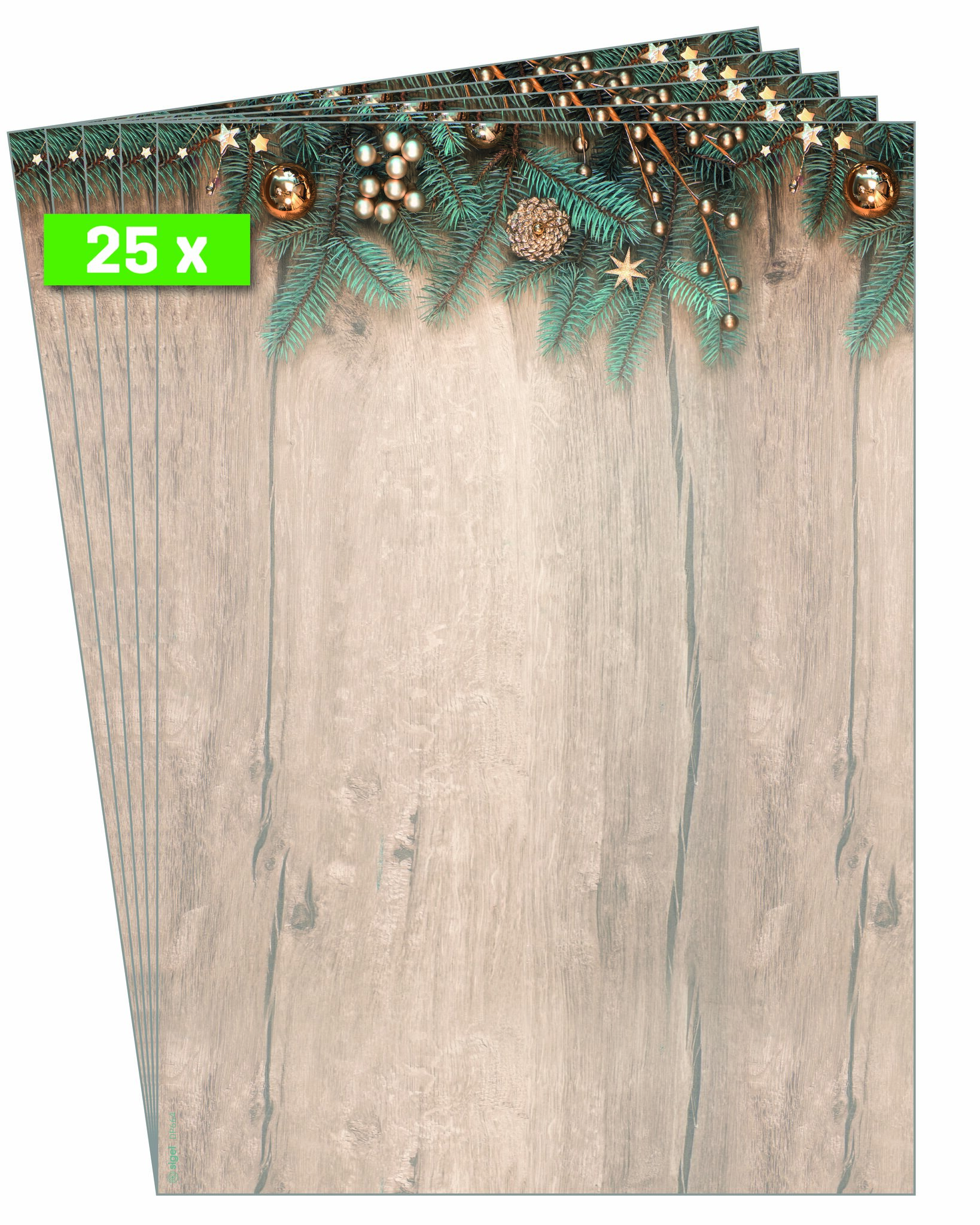 Für besondere Weihnachtsgrüße, die Sie individuell bedrucken und beschriften können. Mit einmaligem Design und ruck-zuck bedruckt: Weihnachts-Motiv-Papier "Golden Greens" (Motiv: Tannenzweige in grün/gold/braun) im Format A4 (Feinpapier, 90 g/m², 25 Blatt). Ihre Produktvorteile:Made in GermanyStimmungsvolles Design, ansprechend und modernFSC-zertifiziert: hochwertiges, umweltfreundliches Papier aus verantwortungsvollen QuellenFür alle Inkjet-, Laser-Drucker und Kopierer geeignet, einfach zu gestalten mit der SIGEL Wordvorlage (Download auf Hersteller-Website) oder per Hand beschriftbarWeihnachtsbriefpapier für Ihre Weihnachtspost, als weihnachtliches Angebotsschild, Einladung, Weihnachtsmenü, Menü- oder SpeisekarteÜberraschen Sie Geschäftspartner, Mitarbeiter, Kollegen oder auch Freunde und Familie mit exklusiven Grüßen zur Weihnachtszeit. Individuell und unkompliziert bedruckbar - für Ihre persönliche und einzigartige Weihnachtspost im Handumdrehen. Keine Abhängigkeit von Druckereien, geringe Auflagen ganz nach Bedarf - und das in Premiumqualität. Lieferumfang: 1x Weihnachts-Motiv-Papier DP664, 25 Blatt
