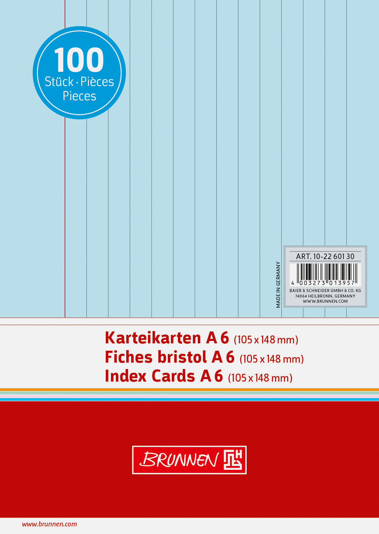 Produktbeschreibung Karteikarten BRUNNEN 22601 A6 liniert blau 100 Stück