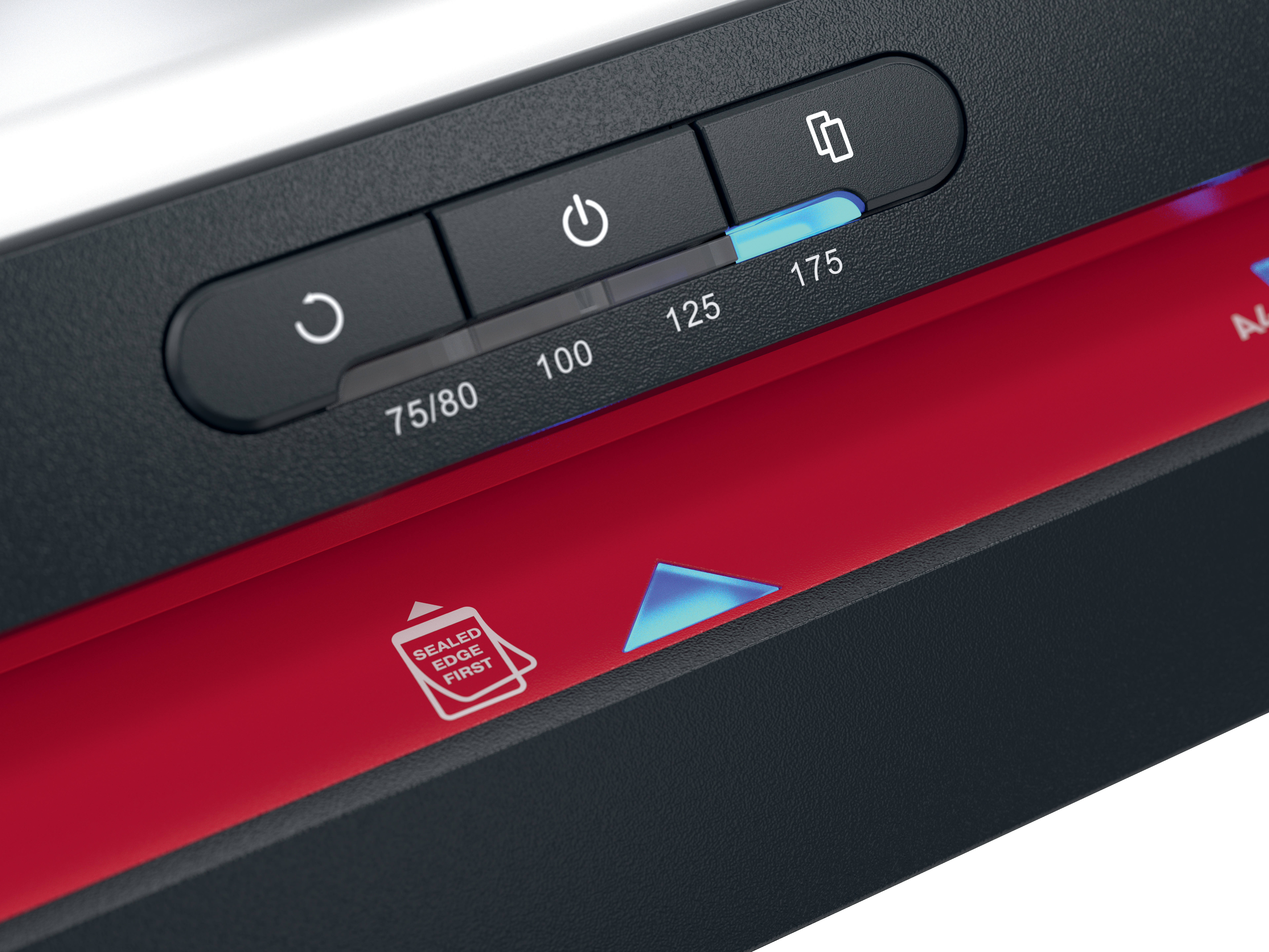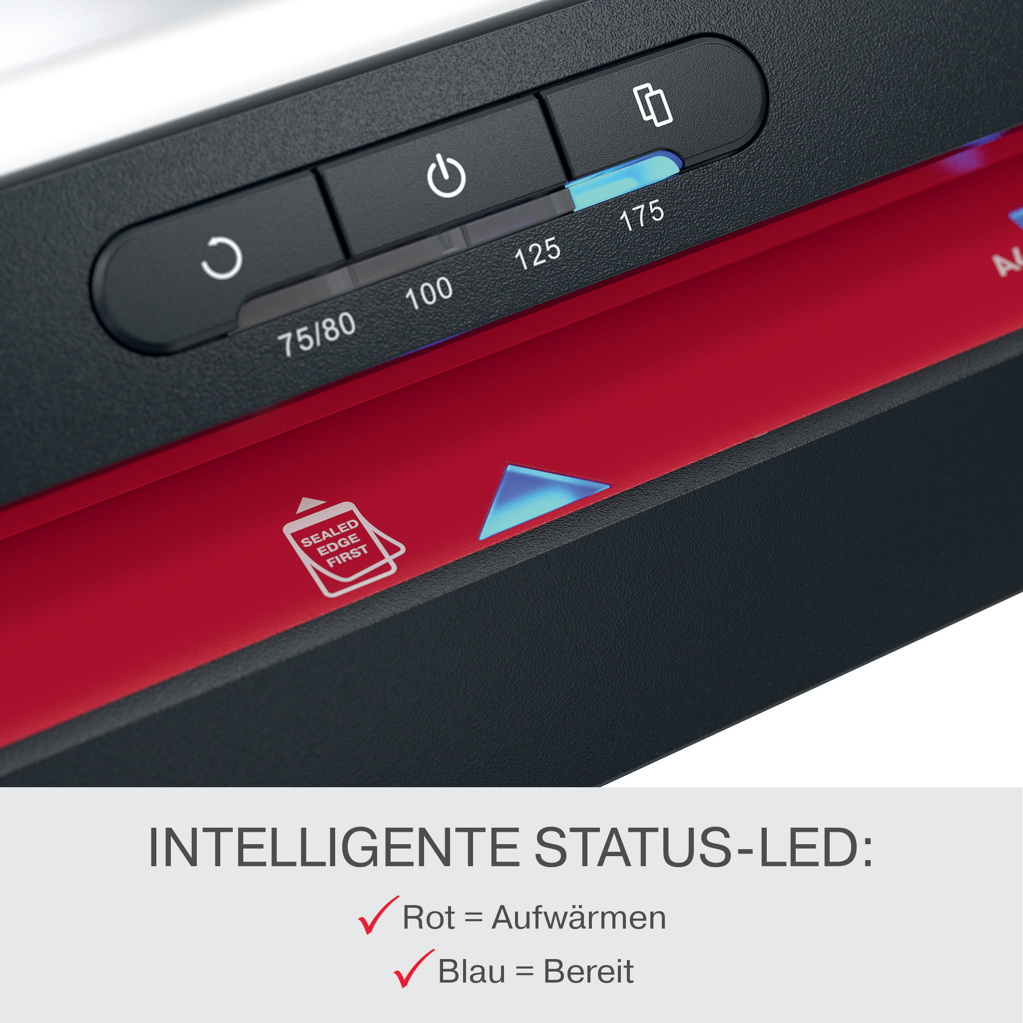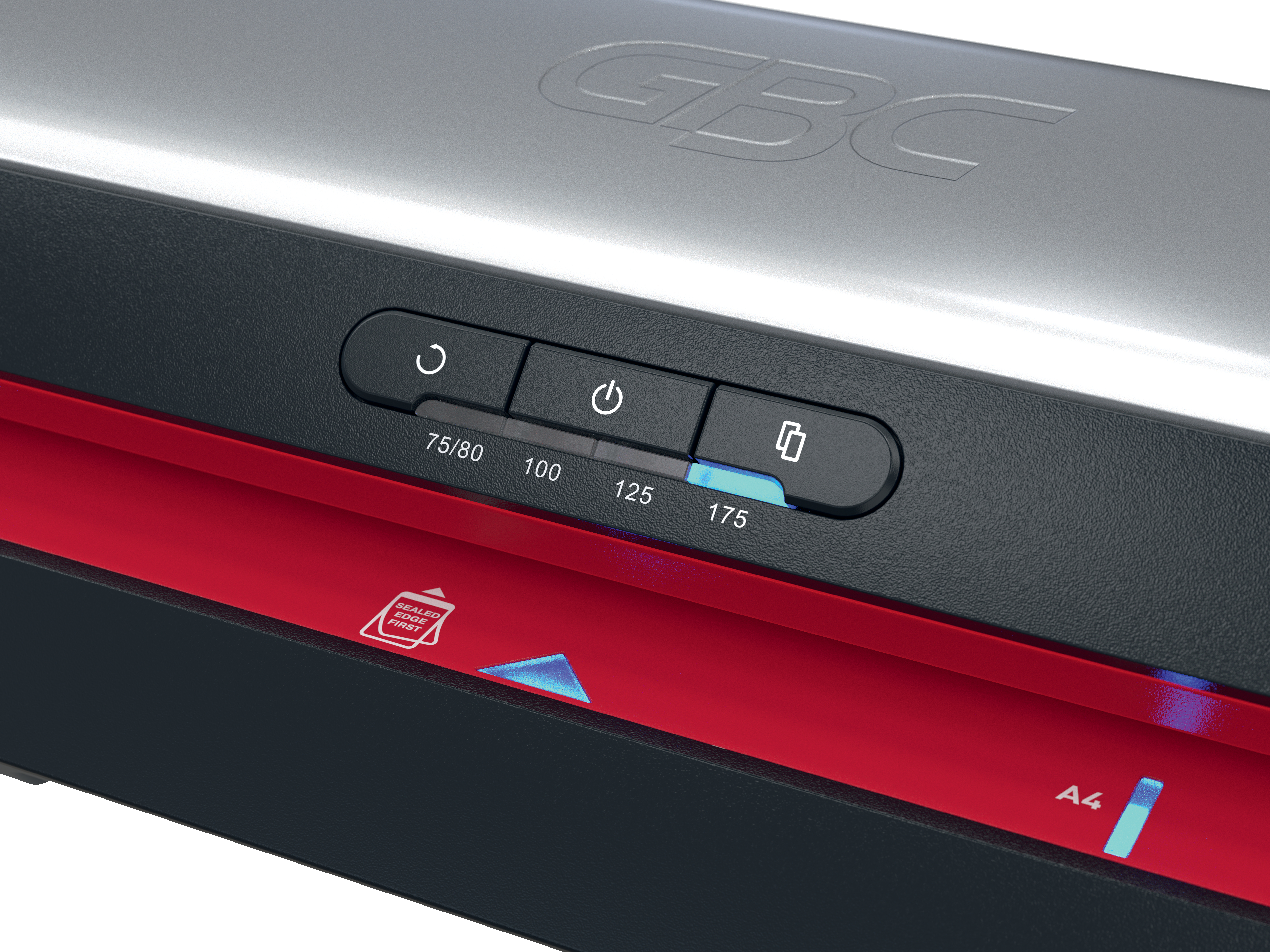 GBC 480HS Büro A3-Laminiergerät bis 175 Mikron, 1 Minute Aufwärmzeit, 800mm/Min · Das GBC 480HS A3-Laminiergerät ist eine zuverlässige und effiziente Lösung für den Laminierbedarf in großen Mengen. Dieses Hochgeschwindigkeits-Laminiergerät wurde für professionelle Umgebungen entwickelt und verbindet Leistung mit Benutzerfreundlichkeit. Steigern Sie Ihre Produktivität und reduzieren Sie die Laminierzeit um 33 % mit GBC-Hochgeschwindigkeitsfolien. Mit einer schnellen Aufwärmzeit von 1 Minute laminiert er ein 75-Micron-A4-Blatt in nur 23 Sekunden und ist damit ideal für schnelle Büroarbeiten. Das intuitive Bedienfeld bietet vier Einstellungen für die Foliendicke von 75 bis 175 Mikron und damit Flexibilität für verschiedene Dokumententypen. Das Bedienfeld verfügt außerdem über eine manuelle Rücklauftaste und eine automatische Rücklauffunktion mit aktiver Stauerkennung für eine nahtlose Entnahme von Folien. Darüber hinaus bietet das SMART-Status-LED-System klare visuelle und akustische Hinweise: rot während des Aufwärmens, blau mit einem Ton, wenn das Gerät bereit ist, und eine automatische Abschaltung nach 15 Minuten Inaktivität, um Energie zu sparen. Die SMART-Eingangsführungs-LEDs sorgen für eine gerade Ausrichtung des Foliens, um Staus zu vermeiden, und machen jede Laminierung perfekt. Schützen und bewahren Sie Ihre wichtigen Dokumente mit Schnelligkeit und einer glatten, professionellen Oberfläche. Schwarze und rote Farbe. · Das Hochgeschwindigkeits-A3-Laminiergerät GBC 480HS bietet schnellen und zuverlässigen Dokumentenschutz und ist für vielbeschäftigte Büroumgebungen konzipiert. Mit einer schnellen Aufwärmzeit von 1 Minute und der Fähigkeit, ein A4-Blatt mit einer Stärke von 75 Mikron in nur 23 Sekunden zu laminieren, gewährleistet es effiziente, hochwertige Ergebnisse für alle Ihre professionellen Laminieranforderungen. · Schnelle Aufwärmzeit, einsatzbereit in nur 1 Minute. · Kompatibel mit Folien von 75 bis 175 Mikrometern. Laminiert ID-Karten bis hin zu Dokumenten im Format A3. · GBC High-Speed-Laminatoren reduzieren die Laminierzeit um 33 %, wenn GBC-Hochgeschwindigkeitsfolien verwendet werden. · Laminiert ein A4-Dokument (75 mic) in nur 23 Sekunden. Laminiert 26 x A4 in 10 Minuten. · SMART-Status-LED: leuchtet während der Aufwärmphase rot und wird blau mit einem akustischen Signal, wenn das Laminiergerät betriebsbereit ist. · SMART-Eingangsführungs-LEDs: stellen sicher, dass die Folien gerade durch das Laminiergerät geführt werden, um Staus zu vermeiden. · Automatische Rücklauffunktion erkennt ein Problem und fährt die Folie automatisch aus dem Gerät zurück. · Das Bedienfeld verfügt über eine Rücklaufschutztaste, mit der sich falsch eingezogene Folien leicht entfernen lassen. · Enthält ein Starterpaket mit 5x A4-Folien (75 Mikron). · Sparen Sie Energie mit der 15-minütigen Abschaltautomatik, die sich bei Inaktivität einschaltet. · Niedriger Geräuschpegel <50Dba für weniger Ablenkung. · Für beste Ergebnisse mit Original GBC-Folien verwenden: z.B. A4 Laminiertasche 2 x 75 Mikron, 100 Stück (Art. Nr. 3740400). CE-zertifiziert, TUV/GS.