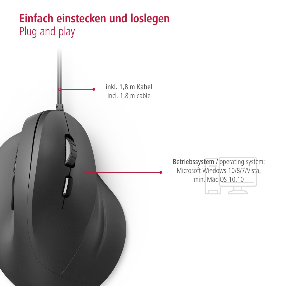 Produktbeschreibung Mouse Hama Vertikal Ergonomisch schwarz Kabel