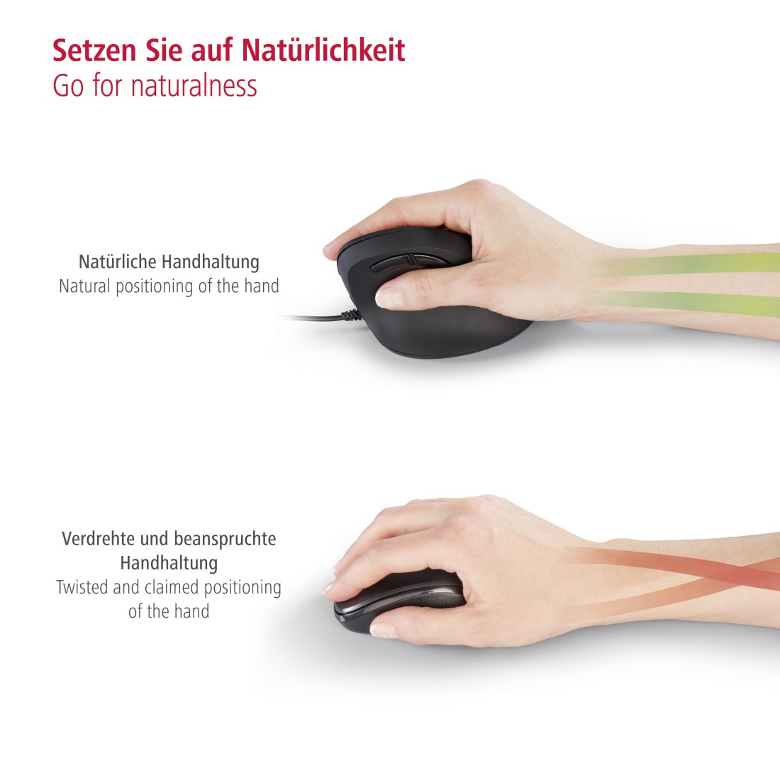 Mouse Hama Vertikal Ergonomisch schwarz Kabel