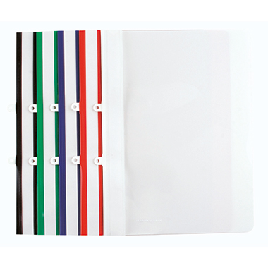 Sichthefter zum Ablegen in Ordnern oder Ringbüchern. Mit Beschriftungsstreifen über die gesamte Höhe. Mit farbigem Rücken, glasklarem Vorderdeckel und herausschiebbarer Abheftmechanik.
