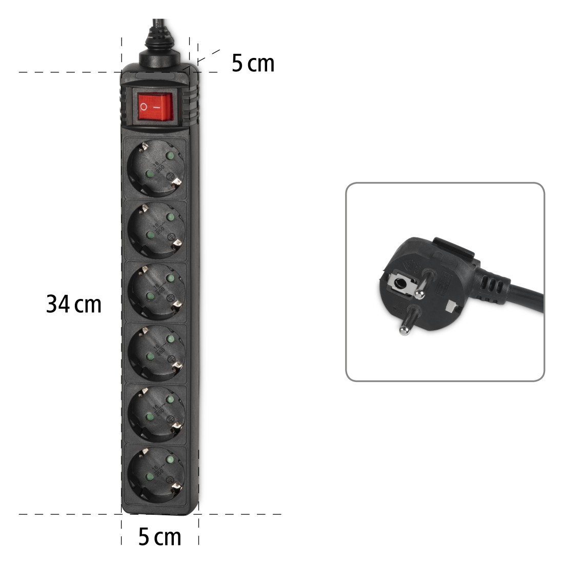 Steckdosenleiste Hama 47760 6-fach schwarz 1,4m, mit Schalter