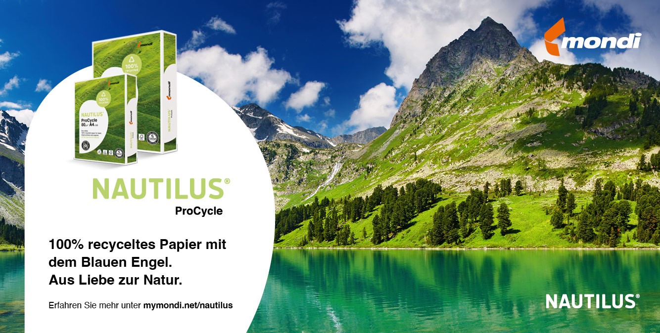 Die Produktfamilie NAUTILUS® steht für Recyclingpapier der höchsten Qualität, mit dem Sie unsere Natur schützen können, ohne dabei bei der Qualität Kompromisse eingehen zu müssen. NAUTILUS® bietet eine breite Palette hochweißer Recyclingpapiere für alle Anwendungen. NAUTILUS® ProCycle trägt die führenden Umweltzertifizierungen, wie Blauer Engel, FSC™ und das EU Umweltzeichen; somit setzen Sie mit jeder Anwendung ein klares Zeichen für unsere Umwelt! Darüber hinaus ist NAUTILUS® ProCycle Cradle to Cradle certified® in der Stufe Bronze.* So können wir gemeinsam etwas bewegen.