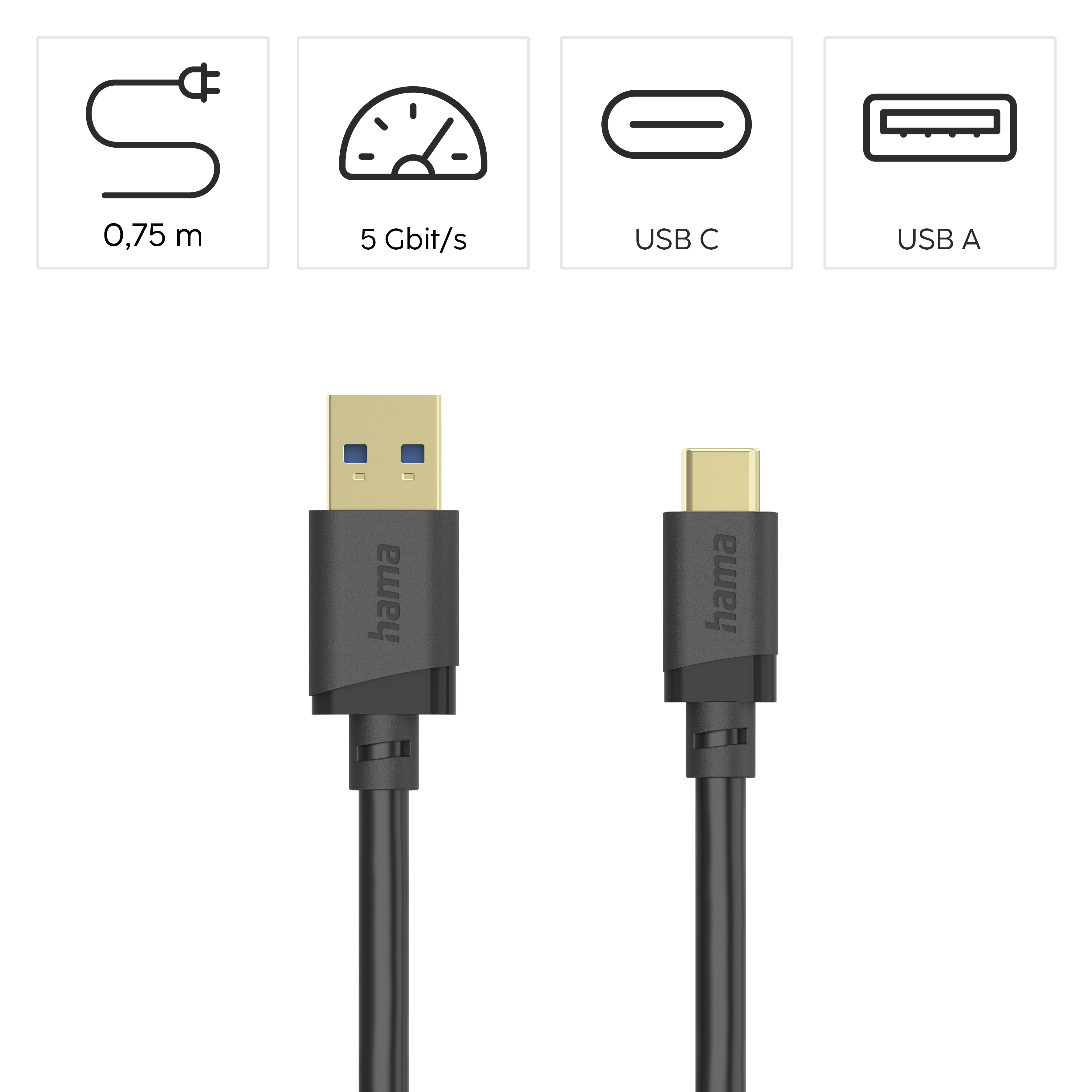 USB-Kabel Hama 202005 USB-A/USB-C 0,75m USB 3.2 Gen1, 5 Gbit/s